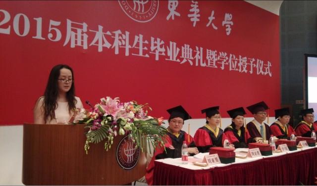 毕业生家长代表夏雨清同学母亲朱莉发言