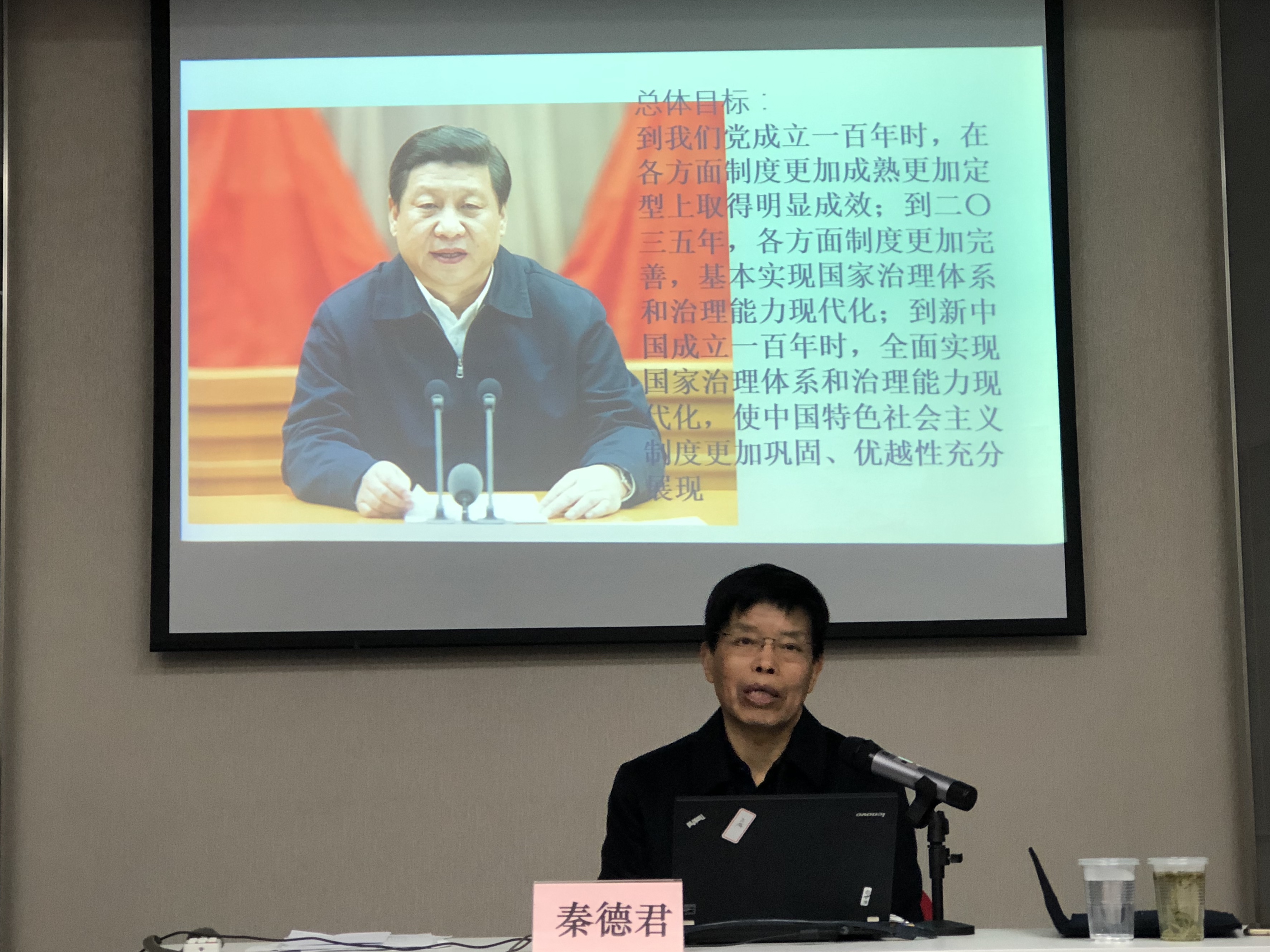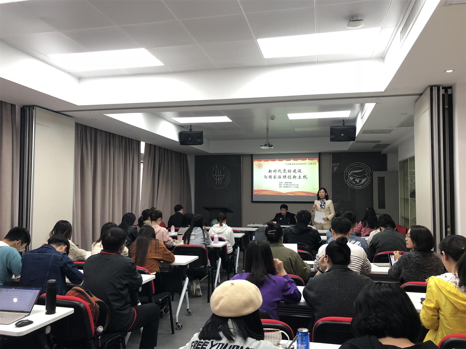 秦教授紧紧围绕“新时代党的理论创新、新时代治国理政理论些创新、新时代党的建设与国家治理创新主线”三个主线入手,深入系统地讲解了从“邓小平理论”到“习近平新时代中国特色社会主义思想”、从“社会主要矛盾论”到新的“社会主要矛盾论”、从“以人为本”理念到“以人民为中心”思想等十二个方面,引经据典、旁征博引,为环境公司师生送上一堂生动而精彩的理论课。秦教授在讲座中说,这十二个方面构成了党的十八大以来党的建设与国家治理领域最重要的结构性政治创新过程,也成为新时代中国特色社会主义最有代表性的重大理论创新内容,为新时代继往开来、进一步开创新的战略大局奠定了基础,拓展了空间,成为中国特色社会主义和马克思主义中国化最突出的创新主线。