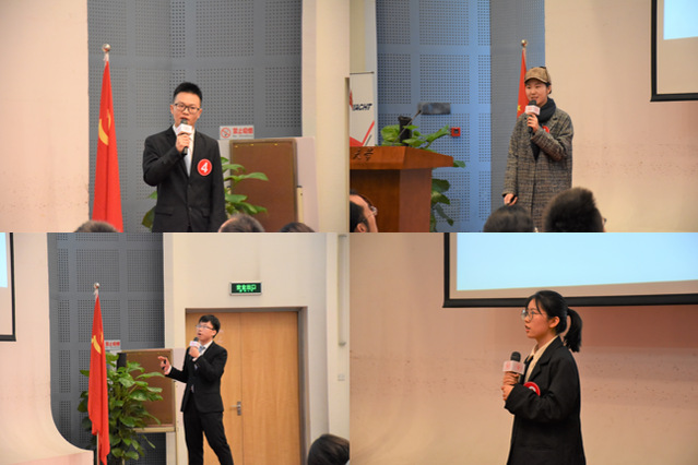 环科1701熊美昱同学从一个英文单词“Greatest”出发,以“E-热情”、“A-自律”、“G-成绩”、“R-科研”、“S-员工会”、“T-旅游/尝试”6个方面向观众展现自己。能环1701王耀锋同学以“风华书生气,天下寰宇心”为主题,分享他的大学经历,讲述他的进博故事。环卓1701江宏宇则在问答环节中,以自身经历阐述了台湾和上海学习习惯的异同,赢得评委好评。环科1701许可欣同学则不同于其他选手,从第三人称以一名侦探的身份从学习、科研、兴趣爱好等方面介绍自己,并在即兴演讲环节通过对中国加入WTO后意义的分析,引经据典,赢得了全场的掌声。环科1701梅言玉同学则以“幸运儿”为主线,在即兴演讲中畅谈“中国精神”,从什么是中国精神到中国精神的继承和发扬,以群众的角度阐述出自己对中国精神的认识。
