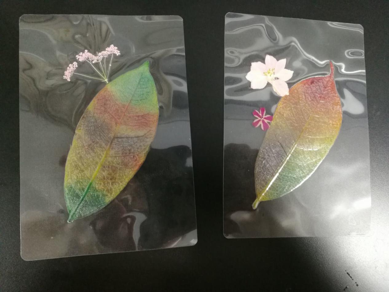 虽然在活动中同学们经历了很多失败,但在不断尝试与同学的帮助下,原本不会做叶脉书签的同学最后也慢慢熟练起来了,最终成功做出了自己心仪的书签。在染色完成后,同学们可以自行对书签进行装饰、塑封,装上精致典雅的流苏,通过以上流程,一枚叶脉书签最终成型了。