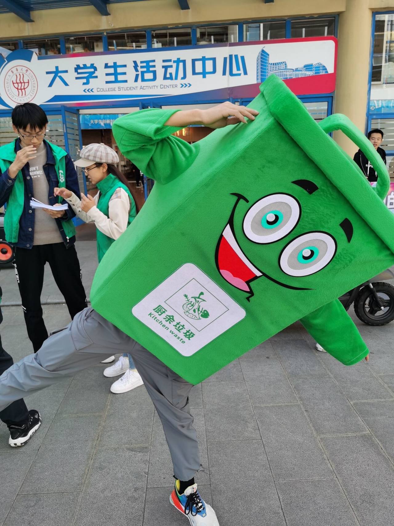 (“吉祥物”志愿者迎接同学们)