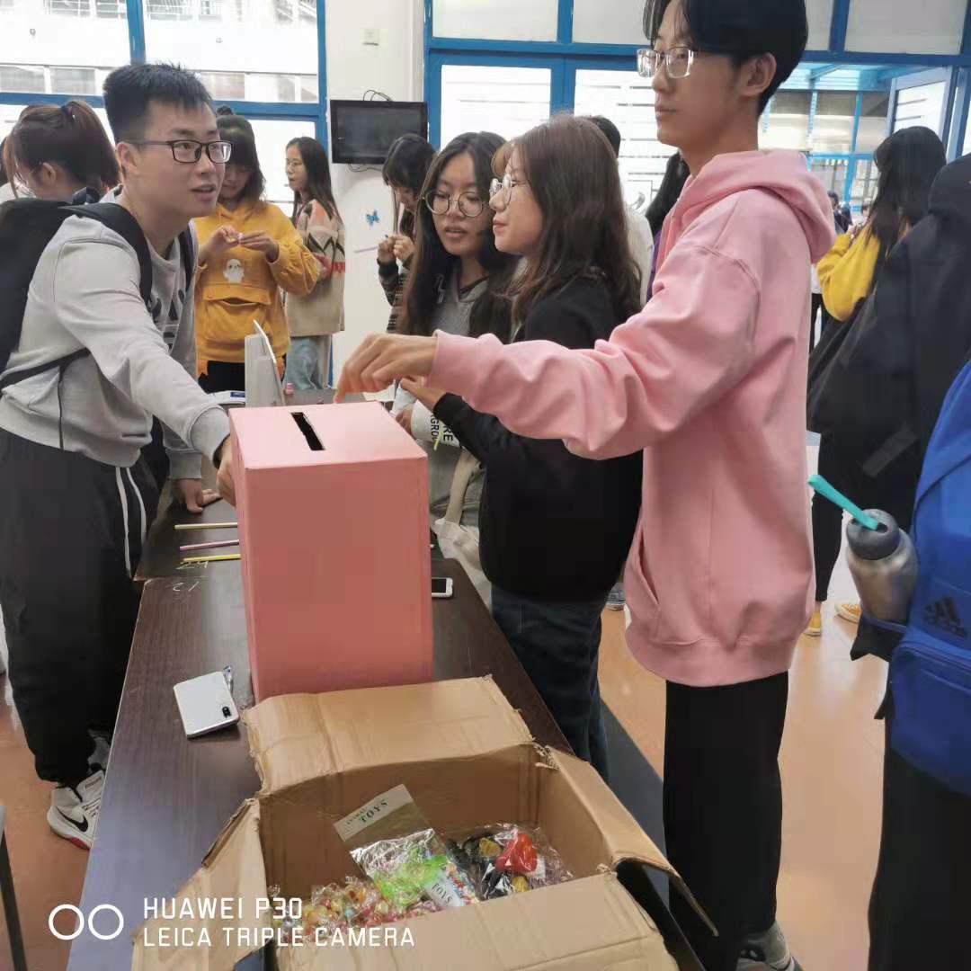 随着中午人潮涌来,活动渐渐到达了高潮,老员工活动中心人声鼎沸。观众们在欣赏完各个宿舍的展示后,投出了自己的幸运星,为心仪的宿舍献出自己的支持,同时观众们还可以在现场领取一样由环院心协精心准备的互动小礼品,进一步提升了同学们的参与感和活泼活动氛围。