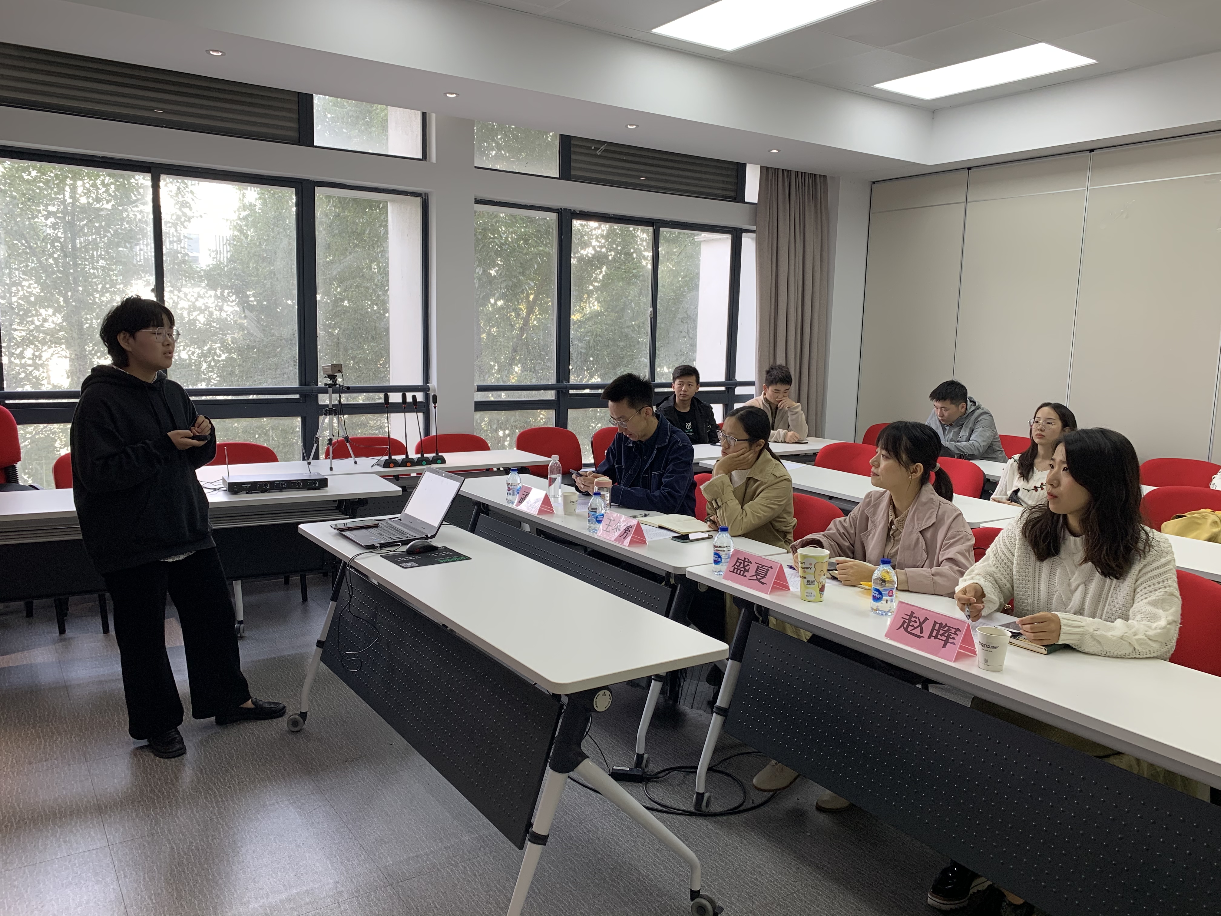 参与此次答辩的共有13名同学,涵盖18和19两个年级所有参与个人社会实践的研究生。每位同学都从实践单位介绍、实践工作内容、实践成果展示和实践小结感悟等方面展开认真详细的论述,向各位评委老师充分展示了他们的实践经历。同学们纷纷表示,自己不仅在实习中收获了专业技能,提升了人际交往的能力,而且对今后的职业规划有了更加明确的目标。活动中,评委老师根据每位答辩者的具体展示内容,从实践时长、实践内容细节及个人职业规划等多个方面进行提问,也对表现出色的同学进行了精彩的点评,现场气氛热烈。