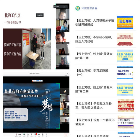 本期培训内容主要分为基础篇、升级篇和实践篇三个部分,其中基础篇注重理论知识的积累,主要开设了“入党流程解读”、“环境公司员工党支部工作介绍”等课程,同时要求学员自学包括《共产党宣言》、《中国共产党章程》、《中国共产党党员教育管理工作条例》、《习近平新时代中国特色社会主义思想学习纲要》和环公司党漾青春“战‘疫’特辑”系列等学习资料。升级篇则是紧跟时事热点,围绕抗疫主题设计了多项课程。实践篇更加注重党员的自我教育和实践作用,组织学员围绕“理想信念的力量”的主题开展指尖微党课,开展线上“最强大脑”知识竞赛等。