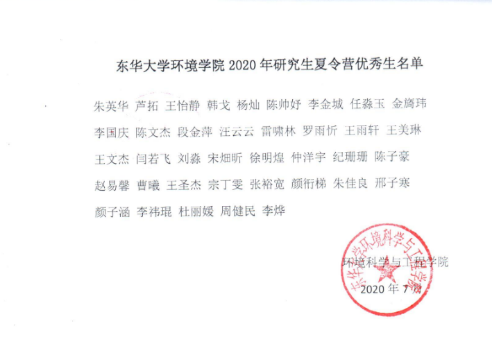 304永利集团环境公司2020年研究生夏令营优秀生名单