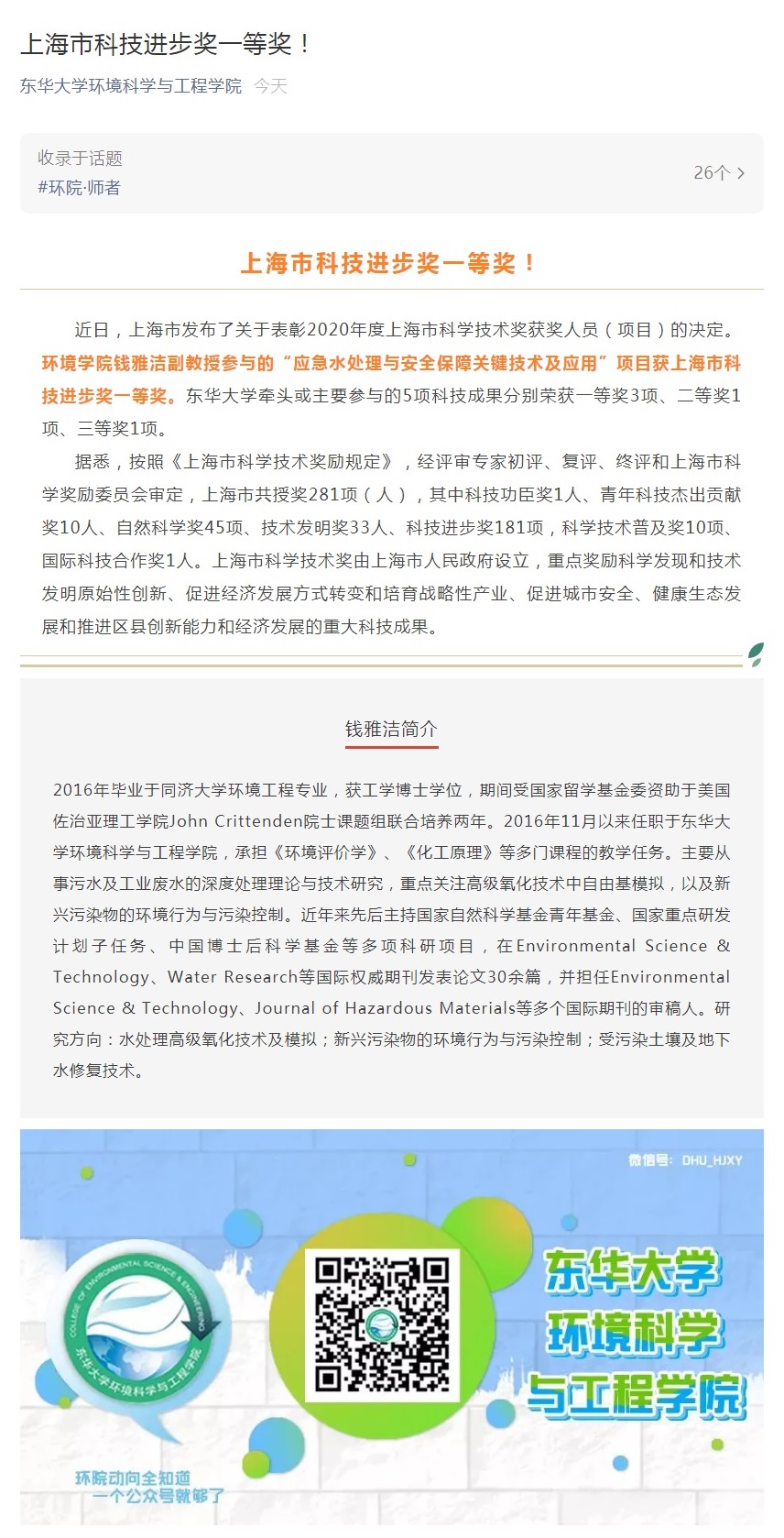 上海市科技进步奖一等奖!