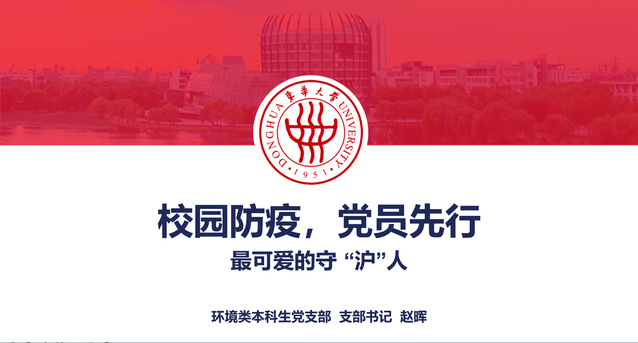 疫情爆发之初,环境类本科生党支部积极响应公司党委“凝心聚力,众志成城,科学防疫,共克时艰”的号召,迅速组织召开支部委员会,对支部后期党员政治理论学习、党员培养发展以及作用发挥等一系列的工作进行部署安排。支部书记率先垂范,认真准备线上党课内容,以“校园防疫,党员先行——最可爱的守‘沪’人”为题,号召支部党员以“环境人”的严格自律和勇于担当,构筑起抗击疫情的“红色防线”,让党旗在疫情防控斗争第一线高高飘扬。
