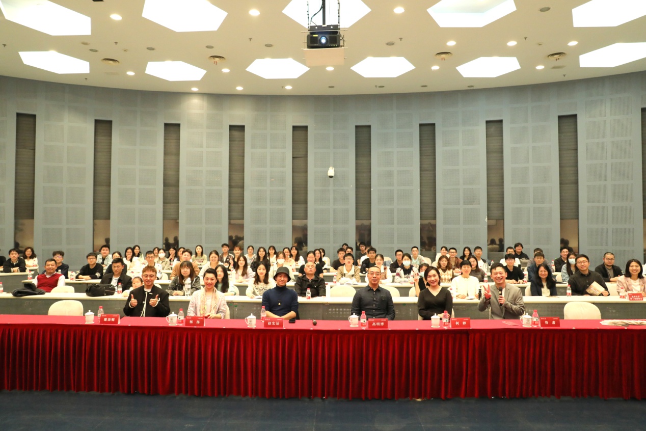 几位主演依次就对角色的理解、为角色所做的准备等进行了分享。国家二级演员、工老生,在剧中饰演关政委的鲁肃老师讲述了海派京剧的发展历程,上海京剧院第一任经理周信芳先生与麒派京剧的发展历程。国家二级演员、工武生,在剧中饰演严伟才的赵宏运老师分享了在创排时的幕后故事。讲到动情处,赵宏运、高明博两位主演还分别展示了《奇袭白虎团》中“同志们一番辩论心明亮”和“趁夜晚出奇兵突破防线”的唱段,以清亮的唱腔唱出了保家卫国的抗美援朝精神,让在场师生享受到了一场别开生面的视听盛宴,带领师生们体悟京剧魅力,感受传统文化的熏陶,领略京剧之美。谈及戏曲艺术的守正创新,鲁肃老师表示,古老的戏曲艺术要在当代获得良好发展,必须与时俱进、提质升级,同时戏曲发展离不开观众,只有争取到更多观众尤其是年轻观众,才能推动戏曲的可持续发展,因此他也鼓励在场的同学们,多多走进剧院,感受古老戏曲艺术的无限生机。