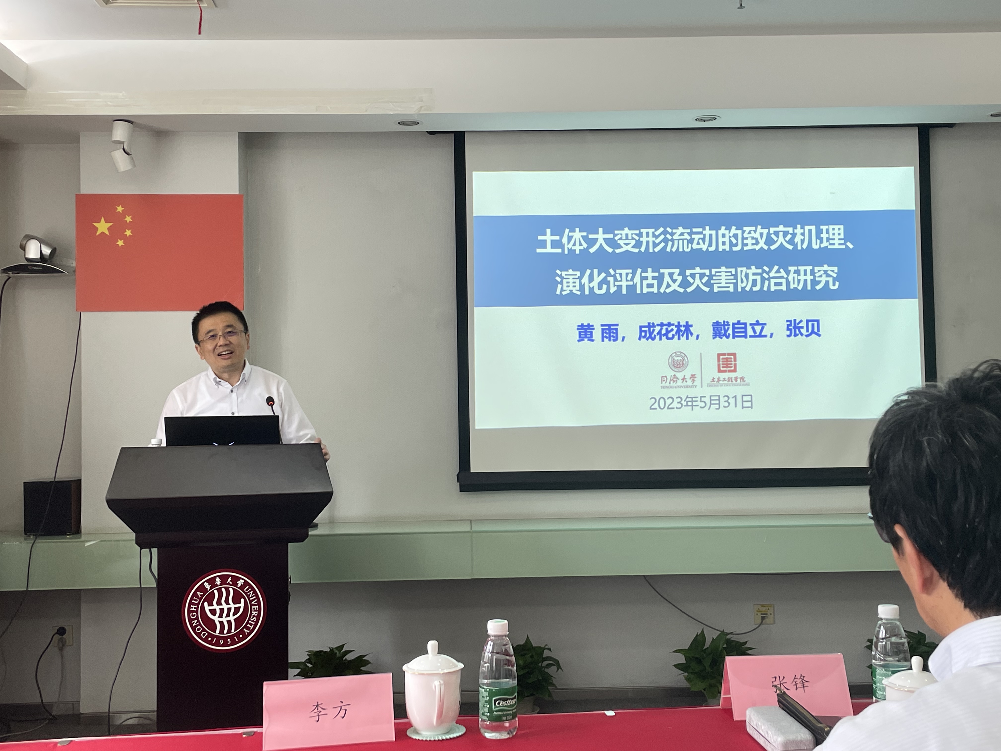 此次学术讲座在304永利集团图文信息中心第三会议室举行,讲座中,黄雨教授围绕我国西南山区易发的滑坡,泥石流等土体大变形流动灾害,详细阐述了此类土体大变形流动现象规律、力学行为和致灾机制,并进一步对土体大变形流动过程高性能计算模型构建以及灾害定量评估方法做了详细介绍,最后,提出了针对此类灾害的防治工程建议。