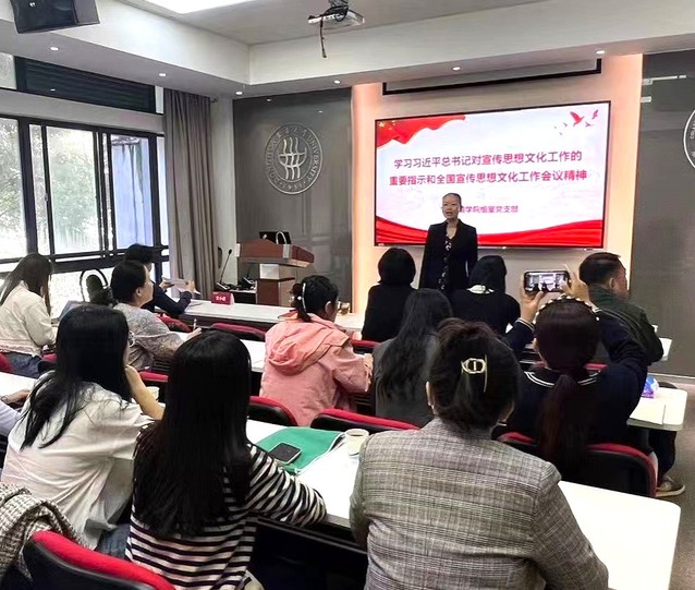 10月24日,为深入学习贯彻习近平总书记对宣传思想文化工作的重要指示,环境公司党委特邀公司党委宣传部副部长虞晨洁,以及朱一超和杨玉璋两位老师开展教师宣传素养专题培训。环境公司党委书记刘建树、公司各系室党支部书记、教师代表参加培训。会议由组室党支部书记吴小倩主持。